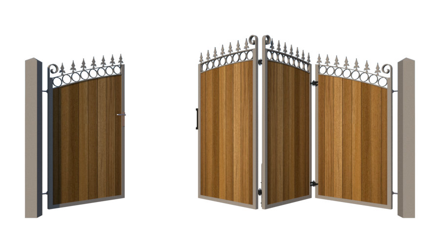 Combining a deep metal frame with stunning Iroko timber to produce a long lasting and aesthetically pleasing bi-fold gate.