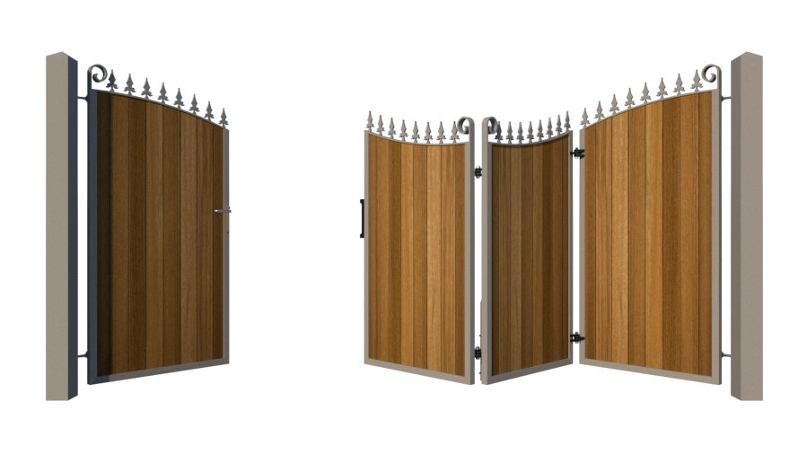 Combining a deep metal frame with stunning Iroko timber to produce a long lasting and aesthetically pleasing bi-fold gate.